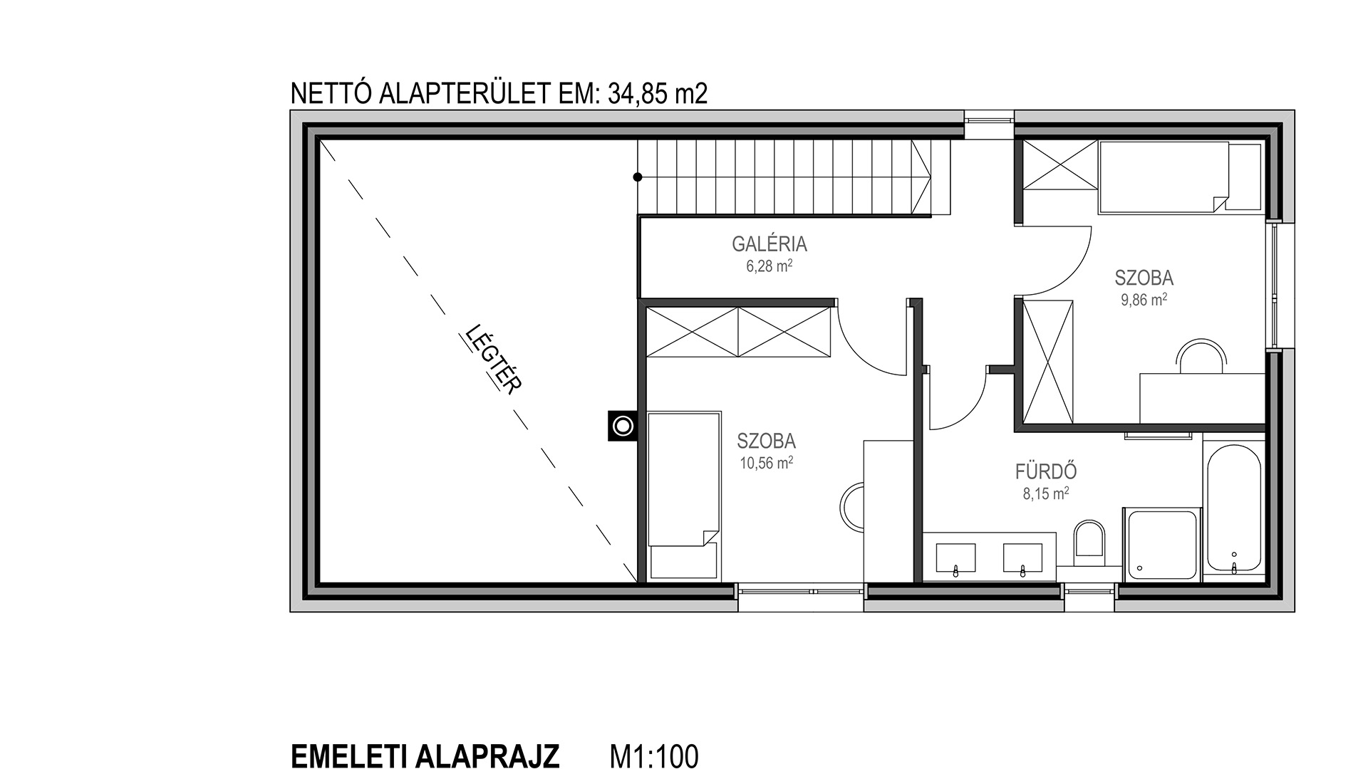 Hasznos alapterület (földszint+emelet): 92,56 m2