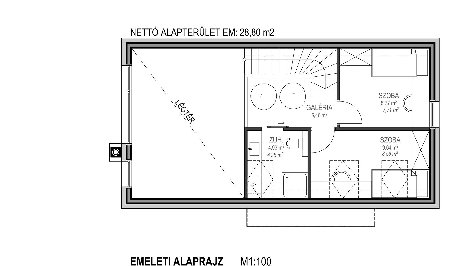 Össz. nettó alapterület (földszint+emelet): 80,47 m2