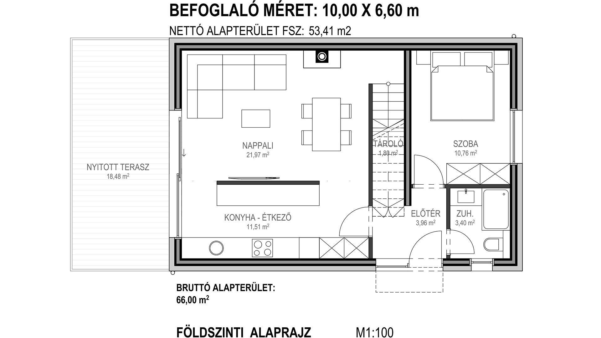 Össz. nettó alapterület (földszint+emelet): 101,37 m2