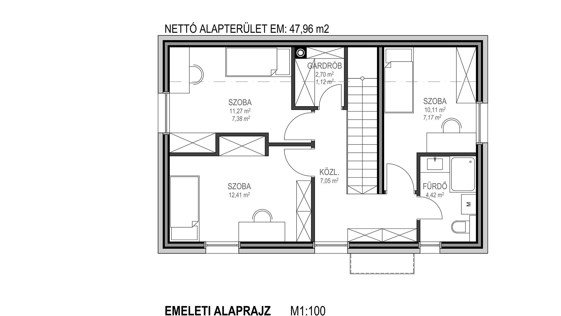 Hasznos alapterület (földszint+emelet): 92,96 m2