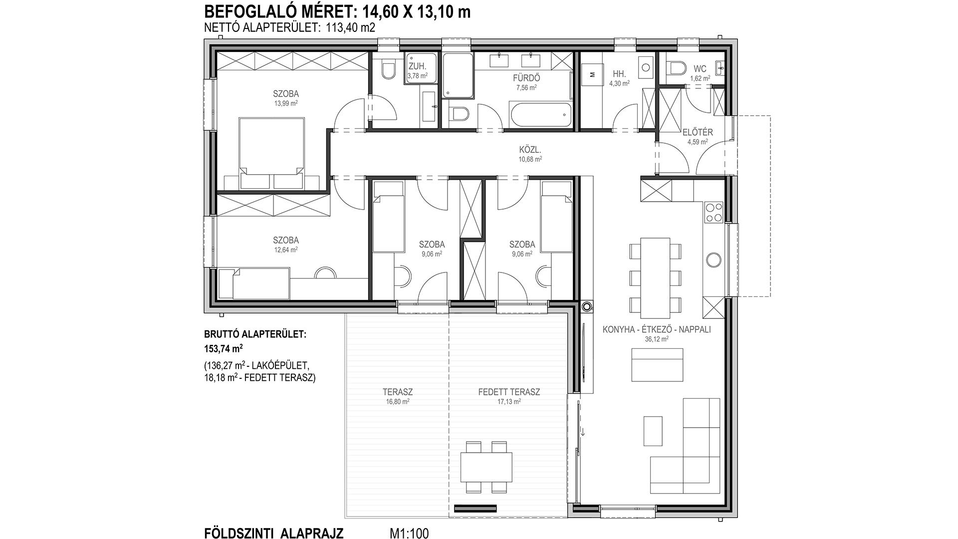 Össz. nettó alapterület: 113,40 m2